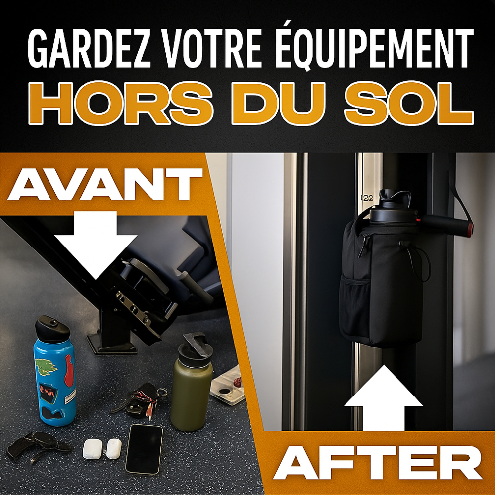 Sac Tac se colle sur n’importe quelle machine au gym et garde tout propre sous tes yeux.